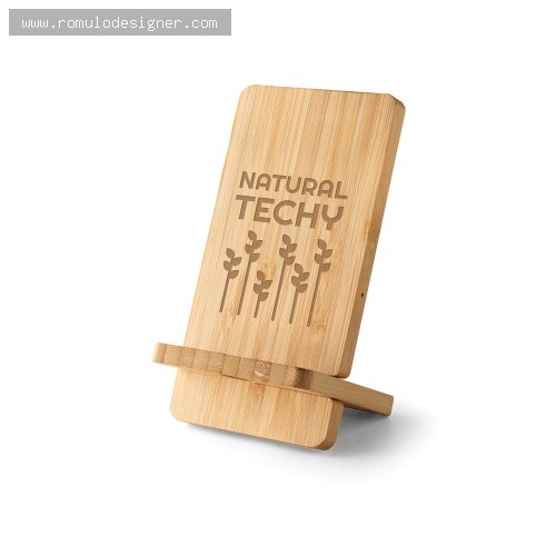 LANGE. Carregador wireless super rápido e suporte em bambu para smartphone 10 W