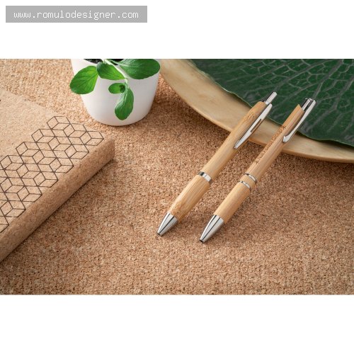 CANETA ESFEROGRÁFICA EM BAMBÚ COM CLIPE DE METAL