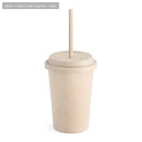 Copo de viagem. Fibra de bambu e PP. Com canudo retrátil. Capacidade: 450 ml. Food grade. Ø93 x 135 mm