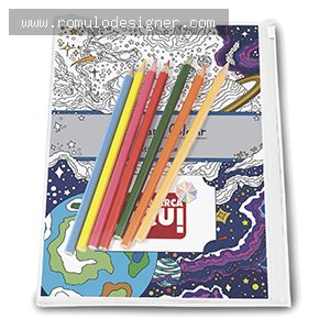 Kit Livro de colorir medida 17x24cm, com 25 ilustrações + Capa Estojo PVC fechamento em ZIP e lápis de cor 12 cores. Incluso personalização na Capa do livro em silk screen 01 cor 01 posição ou hot stamping.