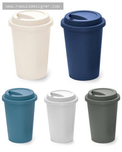 Copo de viagem com tampa e corpo em PP. Capacidade até 450 mL. Certificação EU Food Grade. Ø90 x 135 mm .