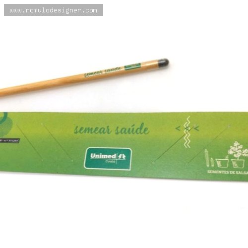 Lápis Ecológico produzido a partir de madeira de reflorestamento, que possui capsula biodegradável com sementes, nas dimensões 185x7mm. Oferecido na cor natural e já apontado, em quatro espécies de sementes de tempêro disponíveis, sendo RÚCULA, MANJERICÃO, COENTRO OU SALSA.