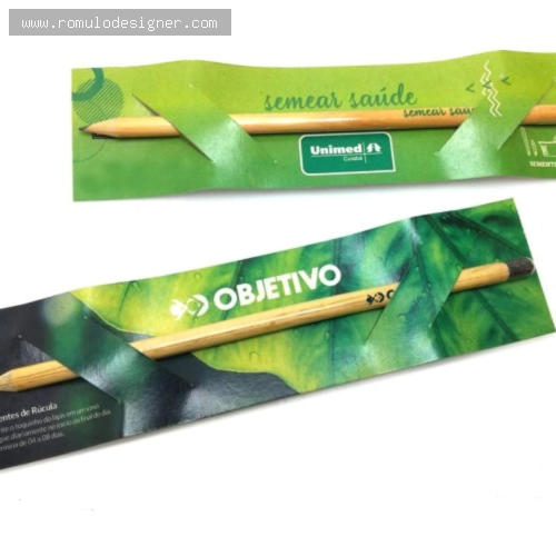 Este lápis promocional é personalizado com o logo do cliente em 1 cor e embalado juntamente com um encarte em papel reciclado 240g, nas dimensões 200x25mm que pode ser totalmente personalizado com sua mesnagem ou logotipo, em 4x4 cores.
