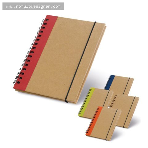 Caderno capa dura. Cartão. Com 60 folhas não pautadas de papel reciclado.