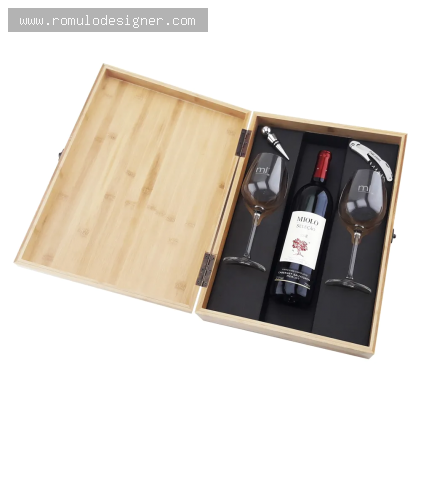 Caixa bambu com 2 tacas + kit vinho 2 pecas (cop6127)